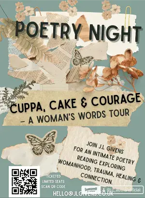An Intimate Spoken Word Experience Join J.L. Givens for Cuppa, Cake & Courage a 90-minute spoken-word gathering centred on womanhood, memory, resilience, and the ...