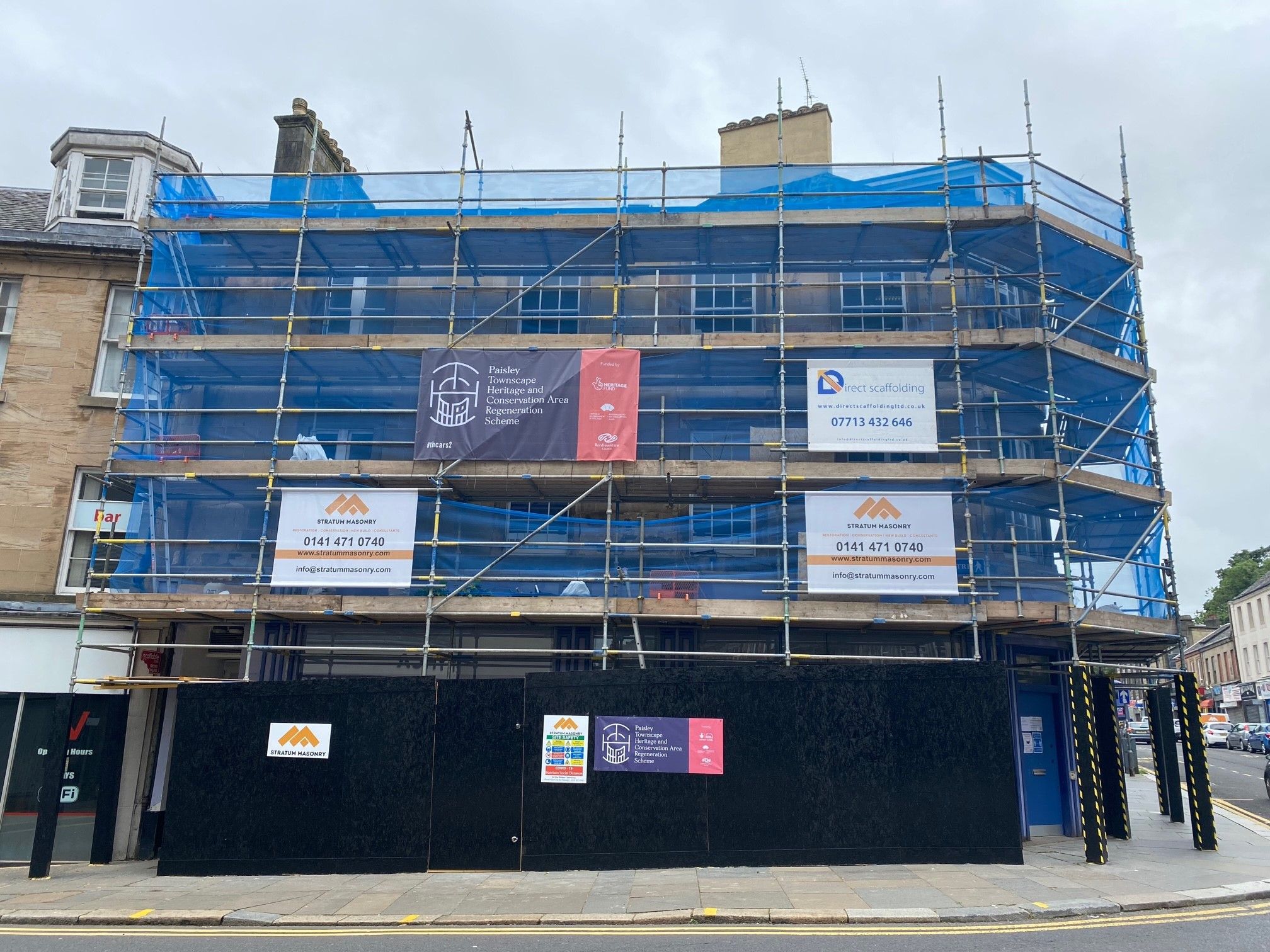 Located in a prominent position on Paisley High Street, the Paisley TH.CARS2 grant at the C-listed 41 High Street supported extensive exterior stone repairs to the upper floors of the building. The stone repairs to the upper floors of the property completed in late 2020.